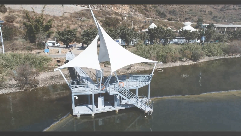 固定在藍(lán)藻聚集點(diǎn)的鋼結(jié)構(gòu)打撈作業(yè)平臺(tái),配置高效可調(diào)式渦井取藻器,智能調(diào)節(jié)、高效汲取富集水面表層5cm的高濃度藍(lán)藻藻漿。