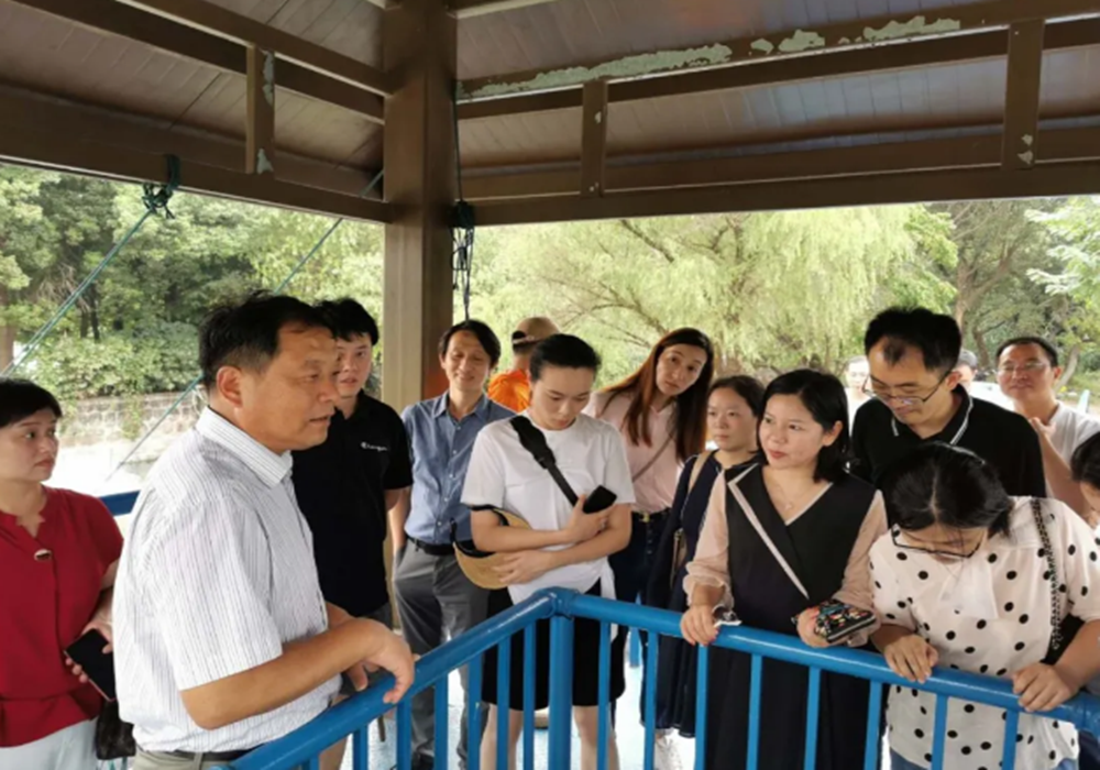 2020年8月26日,無錫市歐美同學會(無錫市留學人員聯誼會)調研組一行20余人,赴藍藻打撈一線實地調研太湖藍藻治理情況。調研組參觀了我司楊灣藍藻打撈點及藻水分離站,慰問了一線藍藻打撈工人,隨后乘船查看太湖水質藻情,并與市藍藻辦就“一三五”藍藻治理無錫模式進行座談交流。