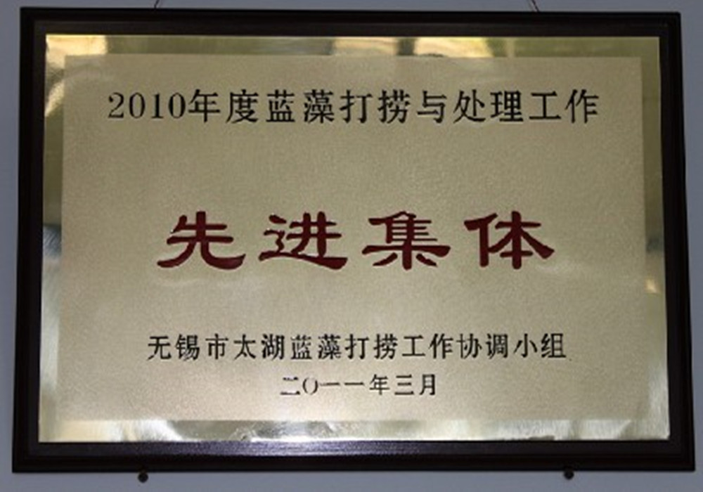 無錫市政府授予無錫德林海公司先進集體榮譽稱號 2010年,在市委、市政府“鐵腕治污、科學治太”總體方針的指導下,全市上下扎實推進太湖治理各項工作,取得了階段性成效,尤其是藍藻打撈處置工作,在機械化打撈、工廠化處置、資源化利用、信息化管理等方面取得了重大創(chuàng)新突破,形成了藍藻治理無錫模式。