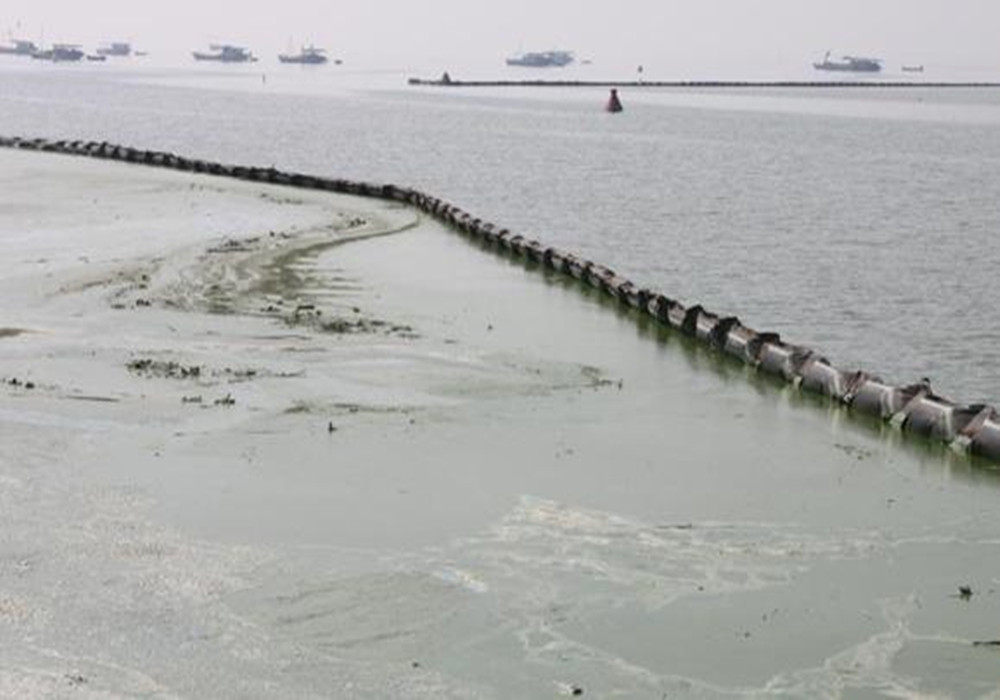 以上三張圖非常直觀的說明了在過去。藍藻的打撈一直是個大問題。那么如今科技飛速發展,藍藻治理技術已經升級為一種完善的技術體系。首先從藍藻的區域分割來看:以前分割的方法都是用泥建壩這會導致什么問題。第一:壩的高度和水位的高度不一致。第二:工程性質耗時大。那么現在我們用什么來分割的呢?看以下圖片: