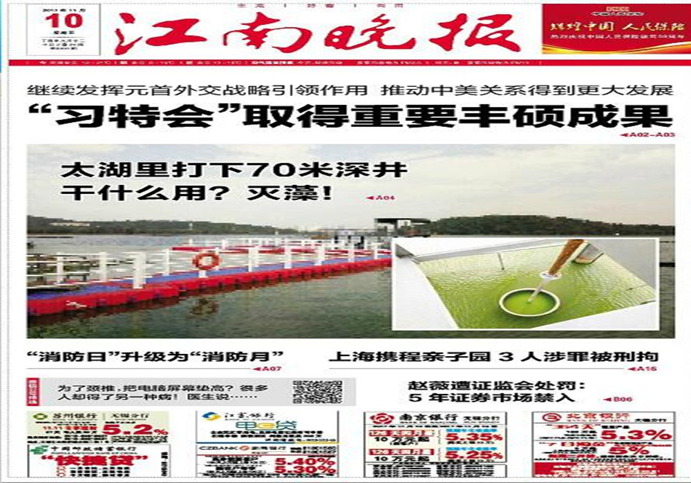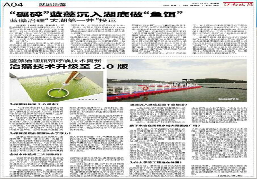 一項剛在錫研發成功的治藻新技術,改變了傳統的藍藻打撈“笨辦法”,在太湖里挖一口70米的深井,將藍藻吸入井內“壓扁”,失去“浮力”后下沉湖底成為“魚餌”。斥資1000多萬元的首個深井滅藻裝置已在錦園藻水分離站投運。這也是我司為了治藻在太湖中開挖的第一口“井”。