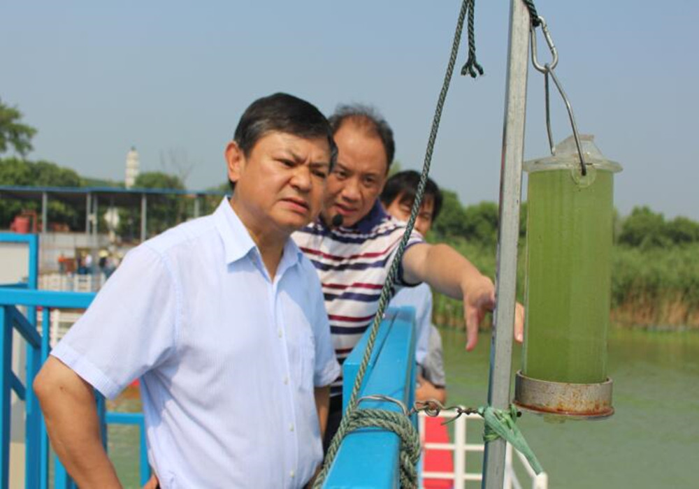 2018年7月26日,生態(tài)環(huán)境部黃潤(rùn)秋部長(zhǎng)一行四十余人蒞臨由我司承擔(dān)的“加壓滅藻技術(shù)”工程示范區(qū)進(jìn)行督導(dǎo),本示范工程為中國(guó)科學(xué)院南京地理與湖泊研究所承擔(dān)的“梅梁灣水華控制與藻源性有機(jī)物處置技術(shù)集成與示范”課題的標(biāo)志性成果。