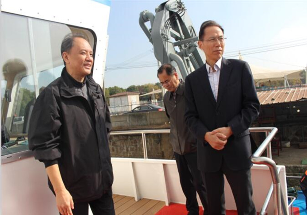 鄭廳長登上了我司研發的多功能監測控藻船,了解了新裝備的預警監測和打撈加壓控藻技術,并看了加壓破壁裝置的原理演示,鄭廳長對我司的新裝置給予了肯定,并贊揚了我司為太湖治理作出的貢獻。鄭廳長指出:在各級政府的重視和沿湖各方共同努力下,出色地完成了今年的藍藻打撈處置任務,下階段,各地繼續認真做好后續工作,并及早謀劃部署明年藍藻(水草)打撈處置相關工作。