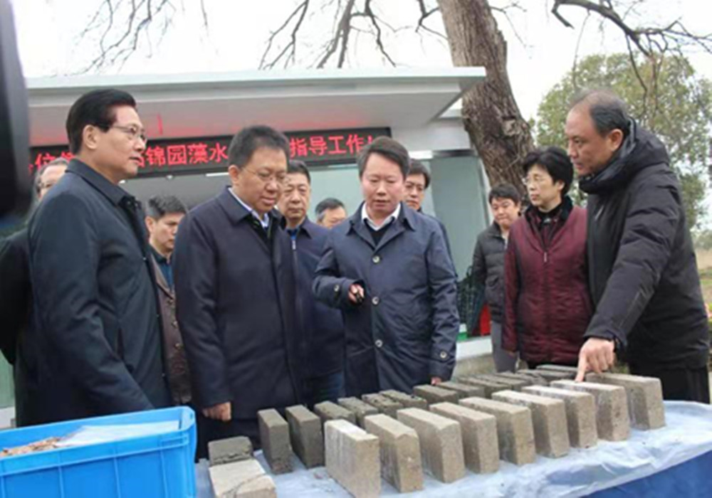 淤泥原位處理技術是利用湖流及風生流的作用,將水體污染主要來源的推移質淤泥溝渠捕獲,并將淤泥匯集到陷阱式原位干化設備,對設備中的淤泥進行持續加熱進行干化,經干化后的淤泥從設備中排出可進行生態利用,制成透水磚等環保材料。淤泥原位處理技術打通了長期以來深潛式高壓控藻工藝的瓶頸—淤泥的去路問題,是生態效益和經濟效益充分結合的一次成功實踐。對此,趙副省長給予了成分肯定并鼓勵我司要以久久為功的持續作為,不斷優化藍藻治理技術,為太湖藍藻治理實現更高水平的“兩個確保”做出貢獻。