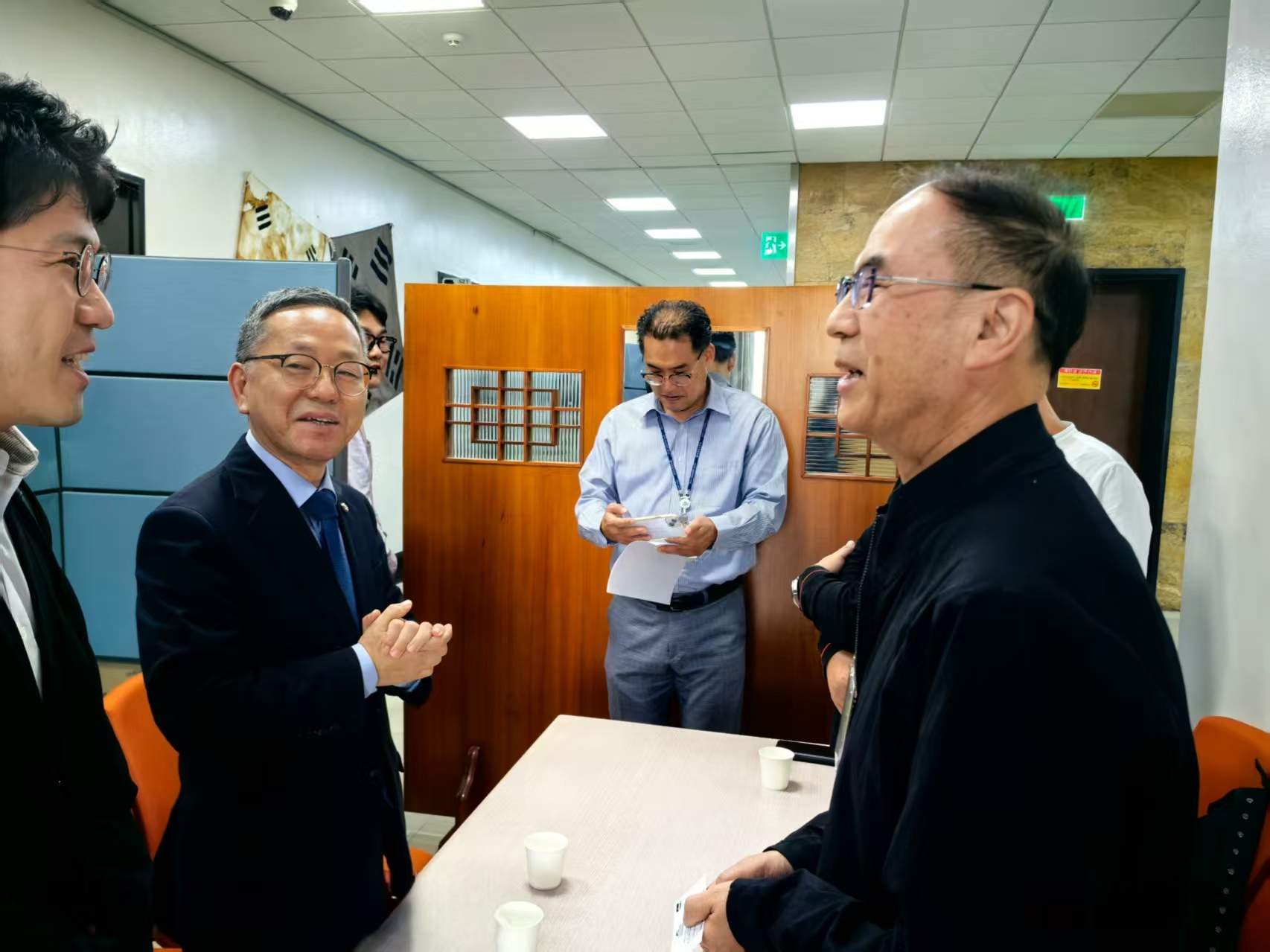 在韓期間,德林海湖泊生態醫院團隊前往國會議事堂拜訪韓國現任國會議員金文洙。院長孫陽向金議員介紹了德林海在中國湖庫藍藻治理方面的豐富經驗,特別是“太湖經驗”和湖泊生態醫院模式,強調藍藻水華治理需從生態系統的整體性出發,構建常態化監測防控與應急治理相結合的工作機制。金議員表示期待德林海湖泊生態醫院能在“太湖經驗”的基礎上,結合韓國水環境現狀與H2O公司、Kwater公司開展治理合作。