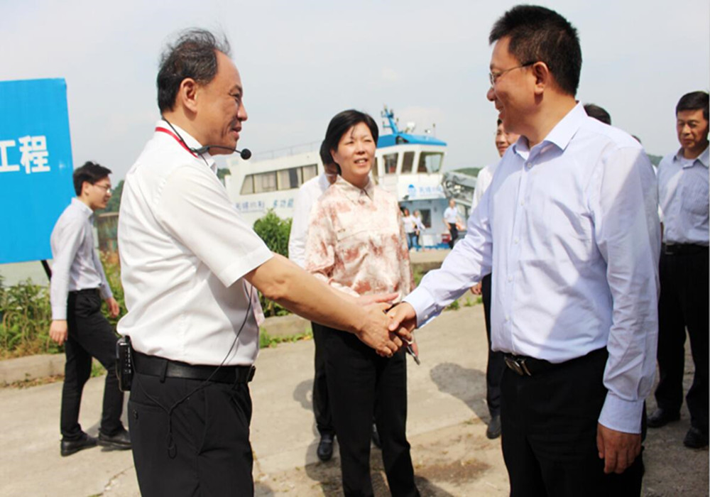 2020年5月22日,江蘇省副省長趙世勇、江蘇省生態環境廳秦亞東副廳長一行來無錫視察太湖安全度夏工作,蔣敏副市長,馬良副秘書長、市生態環境局彭紅宇局長,市水利局張海泉局長及我司領導陪同視察。