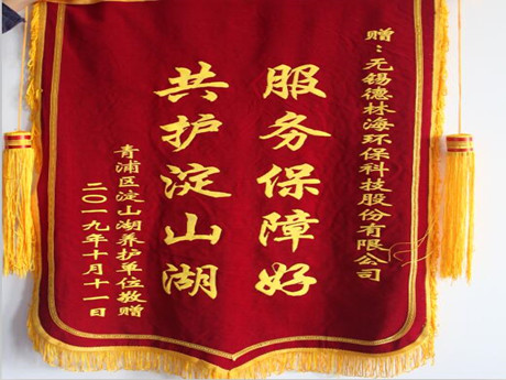 2019年夏天,我司應上海市青浦區淀山湖養護單位的邀請,組織人員前往上海淀山湖藍藻進行藍藻應急治理工作,現工作順利完成,淀山湖養護單位特送來錦旗。