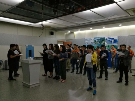 2017年9月30日下午,楊灣藻水分離站的多媒體室內回響著嘹亮的三大紀律八項注意旋律。我司全體員工在合唱《安全靠自己》的安全歌,充滿激情。