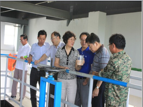 2014年6月5日下午,全國人大環工委主任委員王鴻舉一行在無錫市藍藻辦匡主任、德林海公司領導的陪同下,參觀了黃泥田港藻水分離站。 我司領導向王主任一行介紹了整個藻水分離站的工藝流程,王主任對我公司的藻水分離技術表示了高度贊揚。