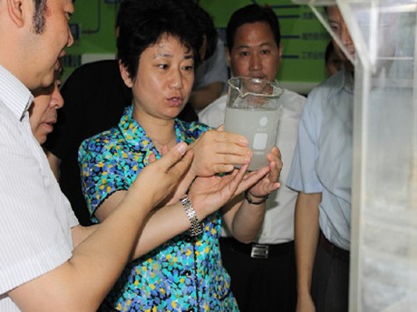2010年6月25日上午,省委常委、副省長(zhǎng)黃莉新來錫視察楊灣藻水分離站。